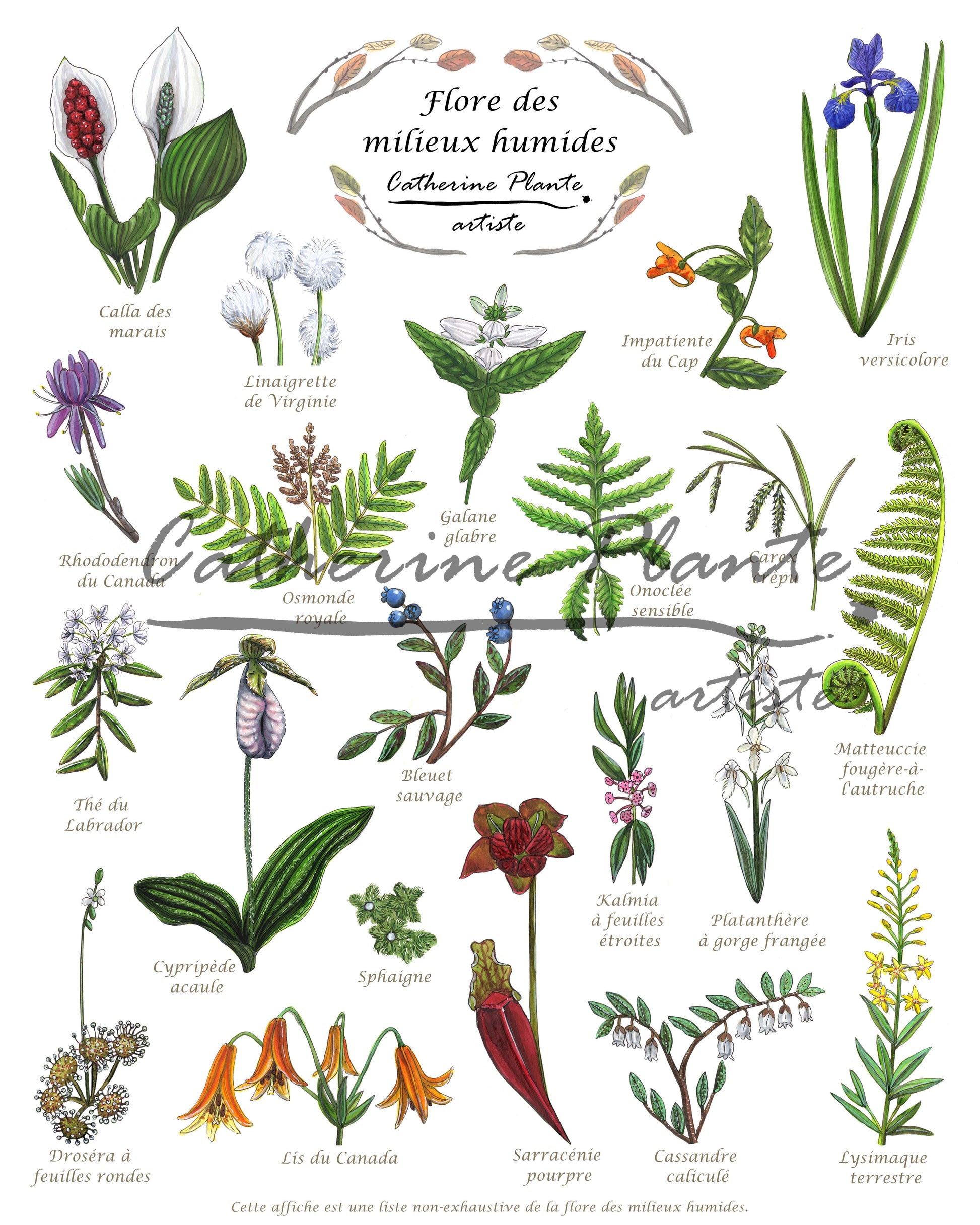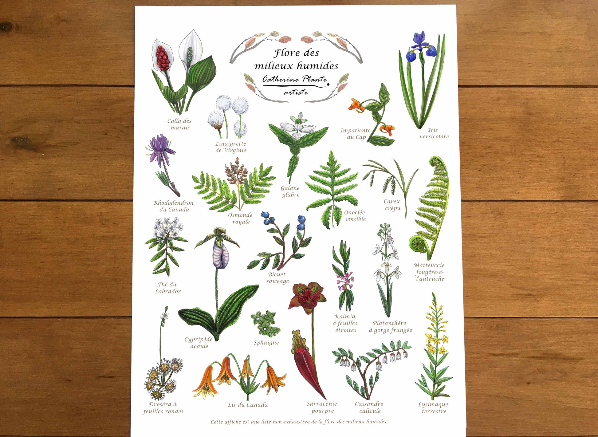 This educational poster was created from my original ink and acrylic illustrations. It depicts several species of undergrowth flowers found in southern Quebec, Canada. The plant names are listed under each species. This poster is a non-exhaustive list of Quebec's undergrowth flowers.