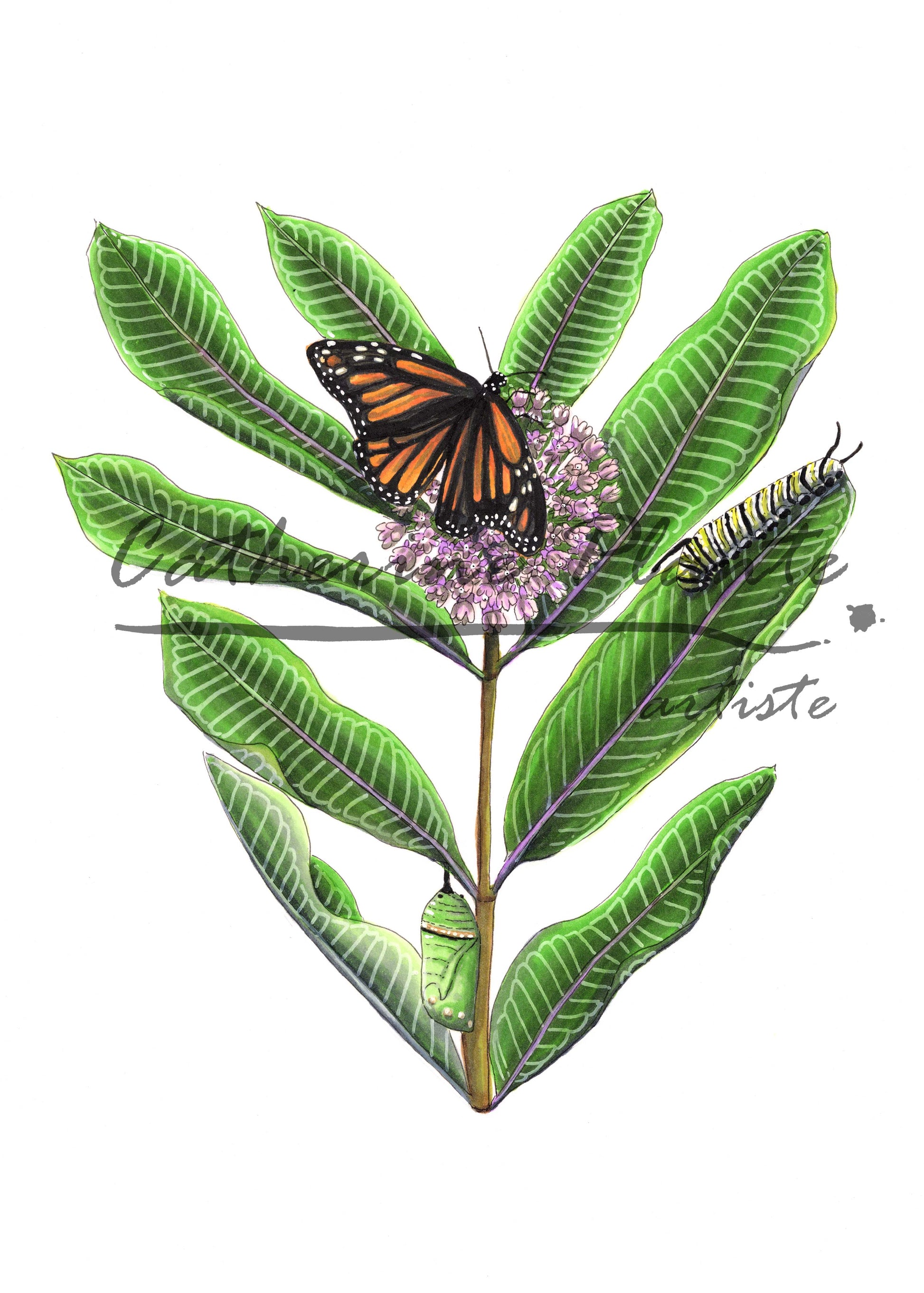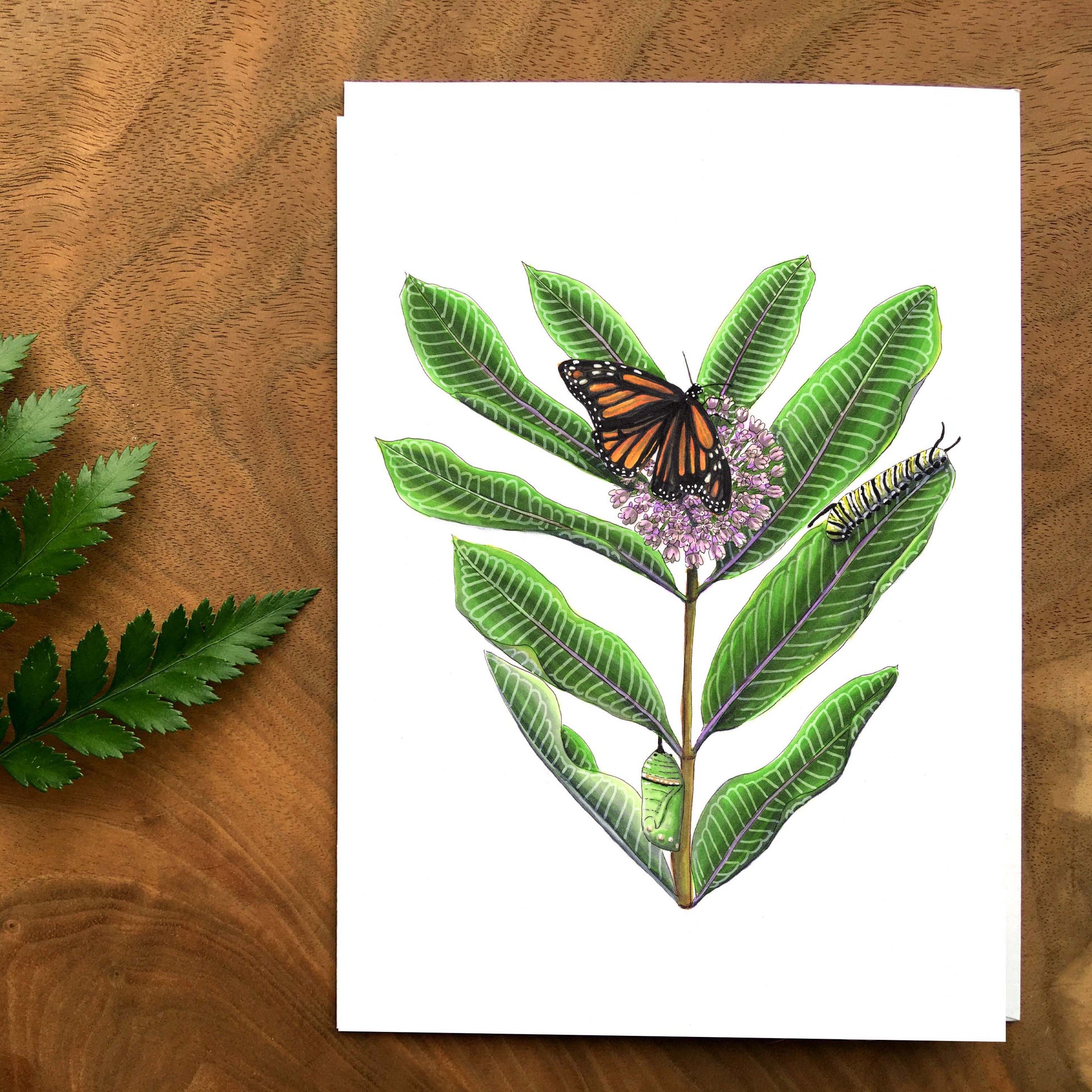 This lovely greeting card is a reproduction of my original drawing titled: The Monarch Butterfly Cycle. The original drawing from which this card is based was created in ink and acrylic on Bristol board in 2018. It is a high-resolution print on premium recycled acid-free paper. It is printed locally.