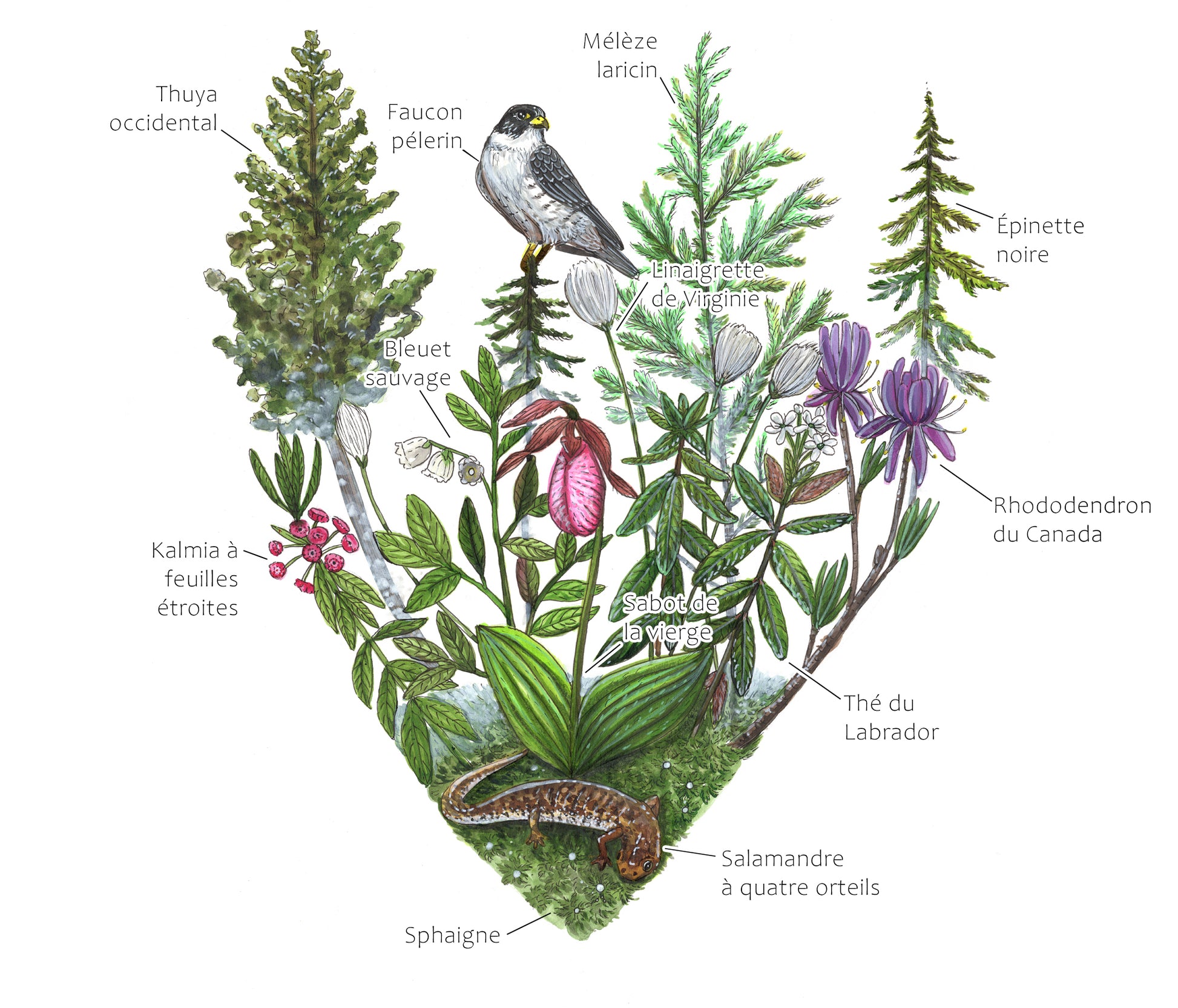 This place, which is dear to my heart, has been explored time and time again. Winter and summer alike, I have walked there and marveled at its flora and fauna. I have even raised colonies of bees there that have pollinated the flowers of its peat bogs. This ecosystem amazes us with its unique peat bog flora; it is teeming with plants rarely seen in the region. The four-toed salamander, a native amphibian that may be designated as threatened or vulnerable, hides in its moss. White-tailed deer and coyotes thrive in its woods. The peregrine falcon, for its part, flies over its lands in search of its next prey.