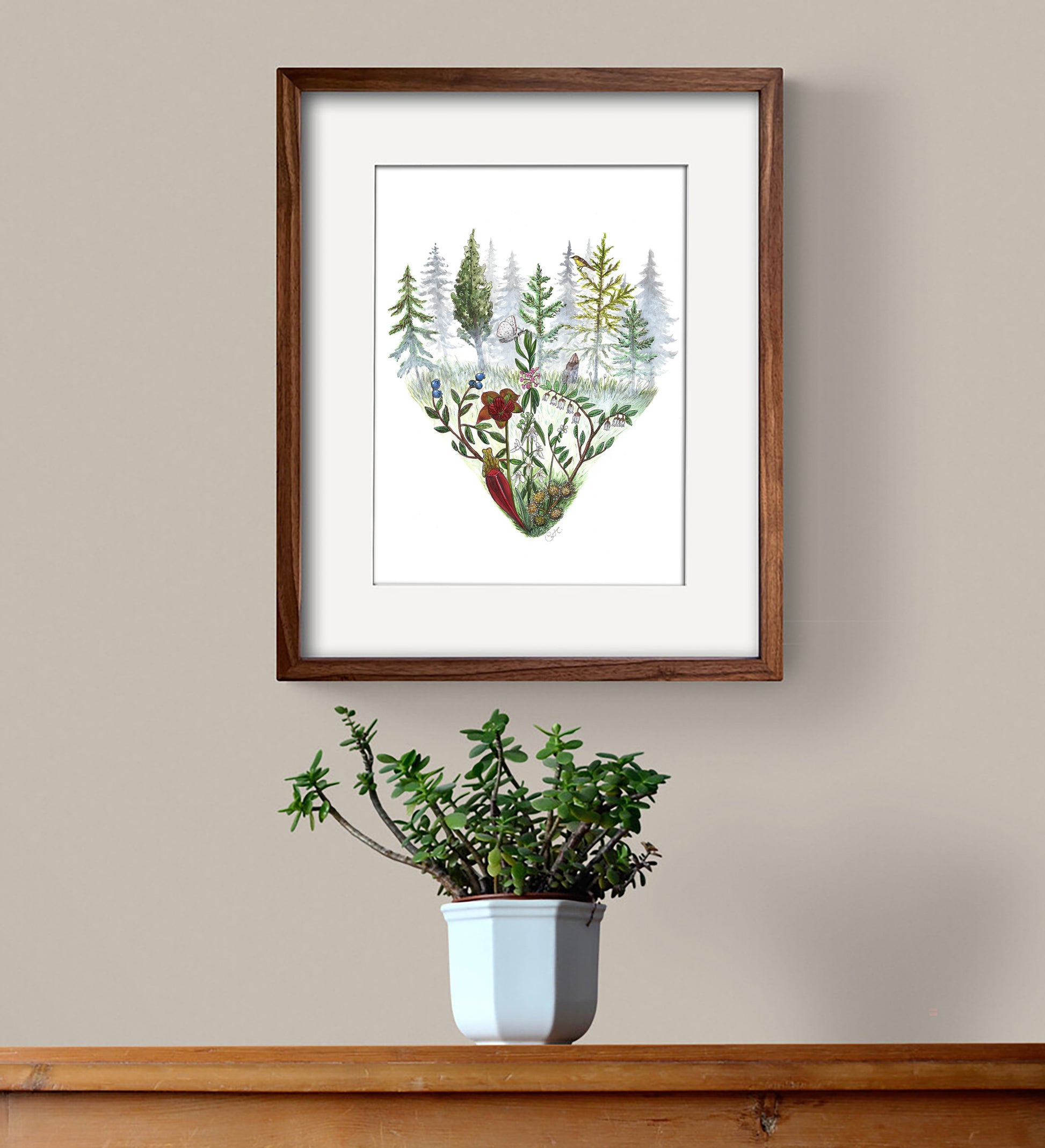 This work was created by hand with inks (acrylic and pigment) and acrylic on acid-free Bristol board in 2025. A fixative and UV-resistant varnish have been applied to the work. The purchase of the original work includes a certificate of authenticity signed by the artist. THE ORIGINAL WORK IS SOLD FRAMED in a local wood frame (Upton black walnut) made by Atelier 685.