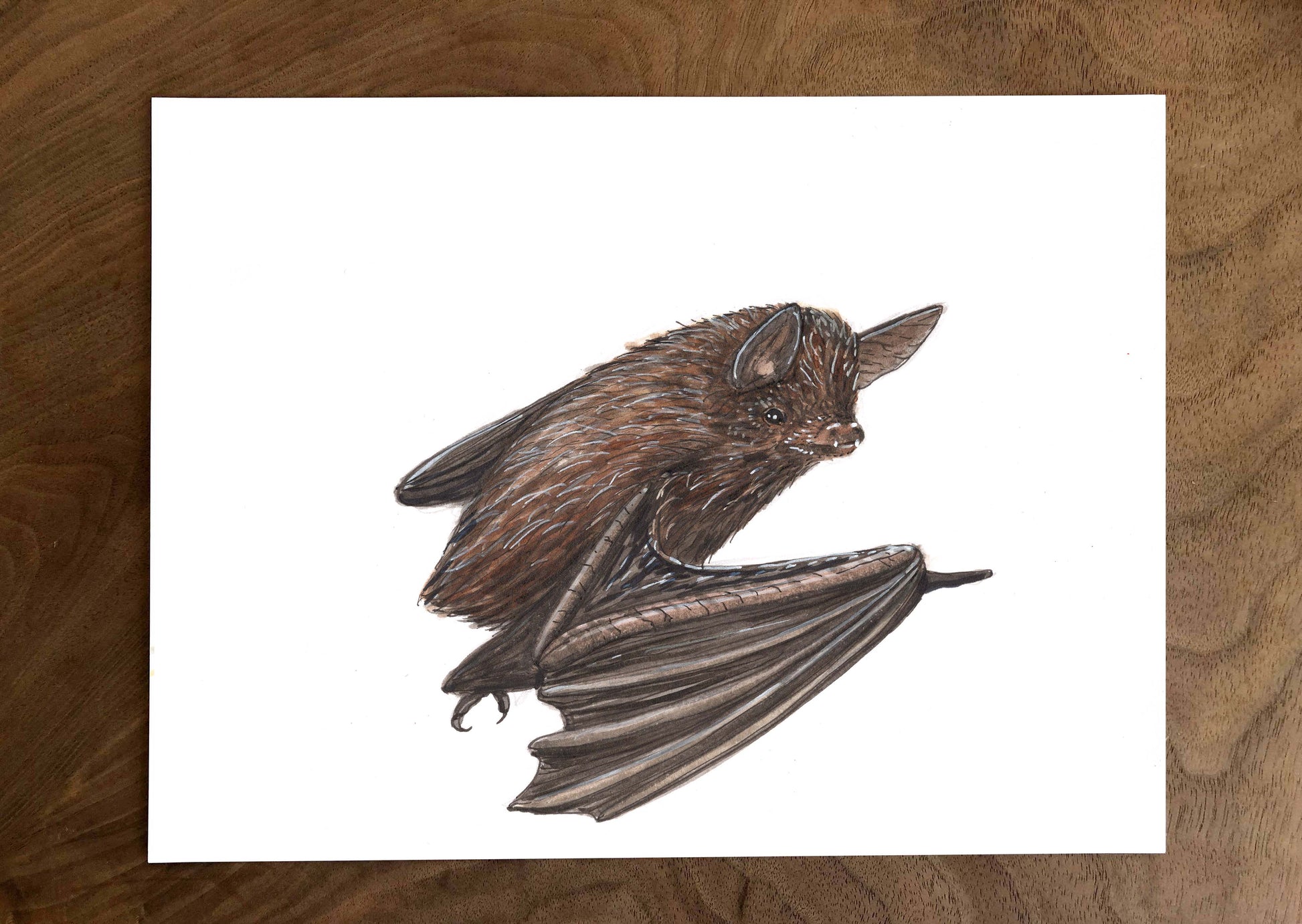 L'œuvre originale Petite chauve-souris brune a été réalisée dans le cadre du projet À Béthanie, la nature, ça marche! de la Corporation de développement de la rivière Noire (CDRN). C'est l'une des illustrations qui apparaissent sur les panneaux d'identification installés à la Halte-Rivière de Béthanie. Elle représente une espèce de chauve-souris retrouvée dans la région.